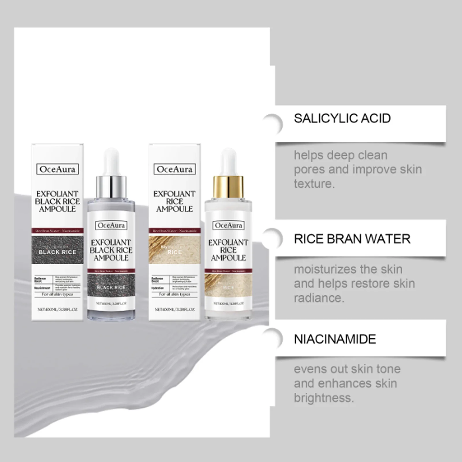 سيروم تقشير الوجه لتنظيف المسام وإزالة الجلد الميت وتنقية التحكم في الزيت وتنعيمها وتفتيح وترطيب أمبو الأرز الأسود